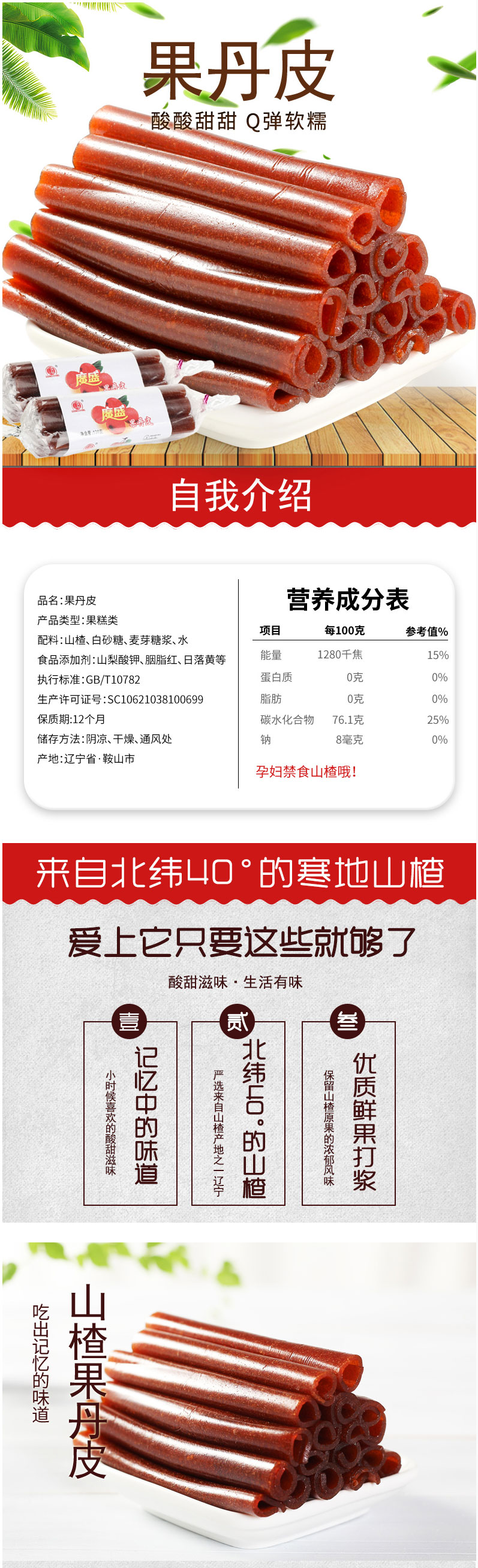 廣盛果丹皮100gX5袋小時(shí)候山楂卷大片懷舊兒童果脯休閑零食組合